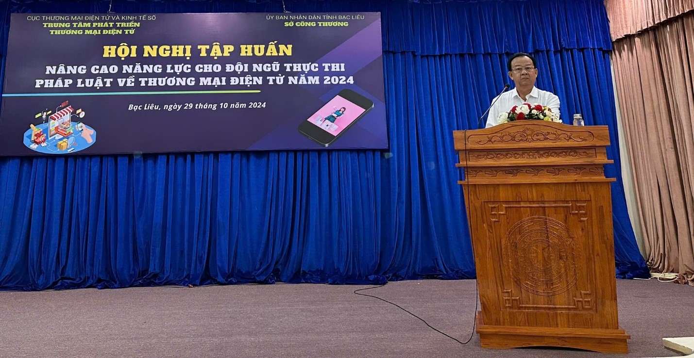 Trao đổi về ý nghĩa của lớp tập huấn tại Bạc Liêu, ông Trần Thanh Mến - Giám đốc Sở Công Thương Bạc Liêu cho biết, Hội nghị do Sở Công Thương phối hợp với Trung tâm Phát triển TMĐT tổ chức với mục đích giúp cán bộ quản lý nhà nước, đội ngũ cán bộ giảng dạy tại các trường chính trị, đại học, cao đẳng, các doanh nghiệp, hộ kinh doanh, nông dân trên địa bàn tỉnh … cập nhật thực trạng TMĐT Việt Nam và xu hướng trong thời gian tới, đồng thời nhận diện một số hành vi vi phạm và xử lý vi phạm hành chính về TMĐT theo quy định hiện hành, các quy trình thanh tra, kiểm tra và xử lý vi phạm trong lĩnh vực TMĐT.