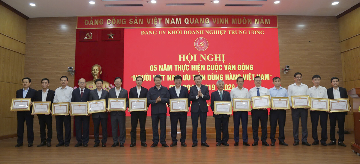 Tại Hội nghị, Đảng ủy Khối Doanh nghiệp Trung ương cũng đã trao bằng khen cho các doanh nghiệp có thành tích tốt trong việc thực hiện Cuộc vận động “Người Việt Nam ưu tiên dùng hàng Việt Nam” giai đoạn 2019 – 2024.